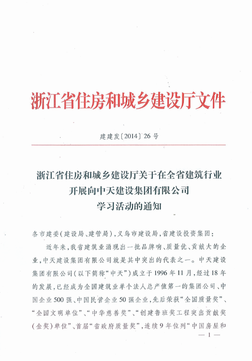 《浙江省住房和城乡建设厅关于在全省建筑行业开展向快盈lll建设集团有限公司学习活动的通知》